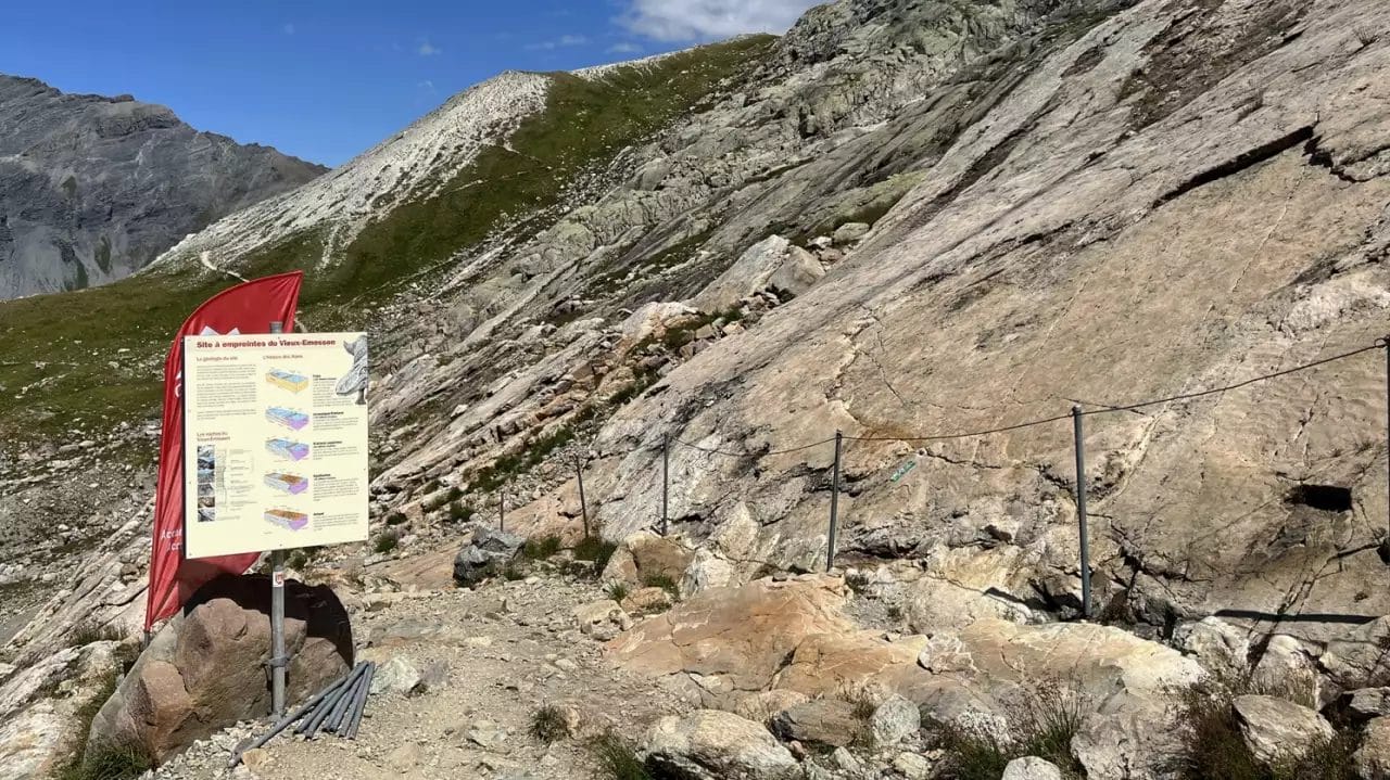 The footprints of Vieux-Emosson , unearthed in 1976, date back more than 240 million years. In 2008, a new discovery by Italian paleontologist Marco Avanzini revived scientific interest in this site. A track on a detached block made it possible to specify the species at the origin of these prints and to formulate new dating hypotheses.